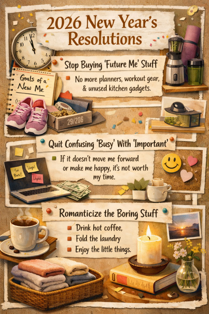1. Stop Buying “Future Me” Stuff. No more planners for a fantasy lifestyle, workout sets for imaginary workouts, or kitchen tools for meals I’ll never make. 2026 is about supporting current me.